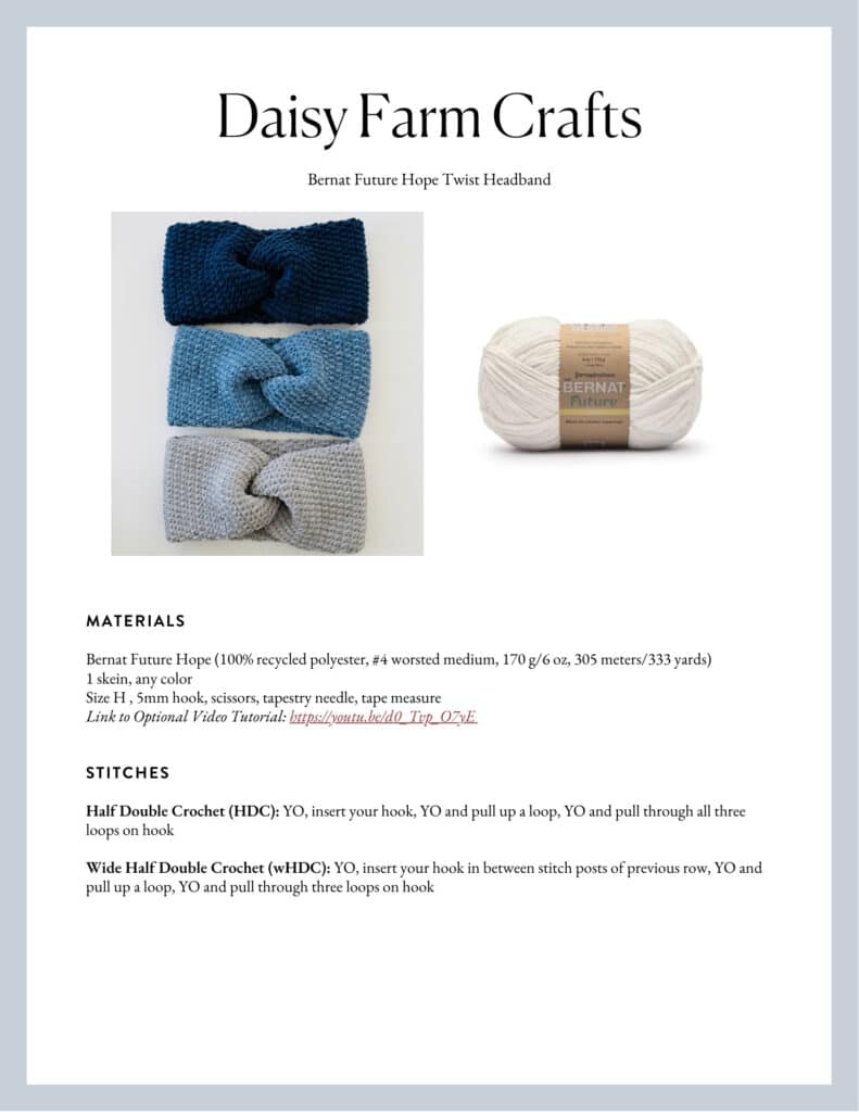I have a YouTube tutorial I made with quick instructions and more of what the yarn is like, so you can see how to fold the headband and sew it together to make the twist.
