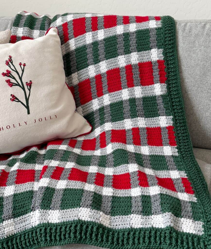 If you have been following me along for many years, you’ll know that I love to make a lot of varieties of gingham and plaid blankets. I use a technique of carrying yarn along the row and switching back and forth to achieve the color changes fairly seamlessly.