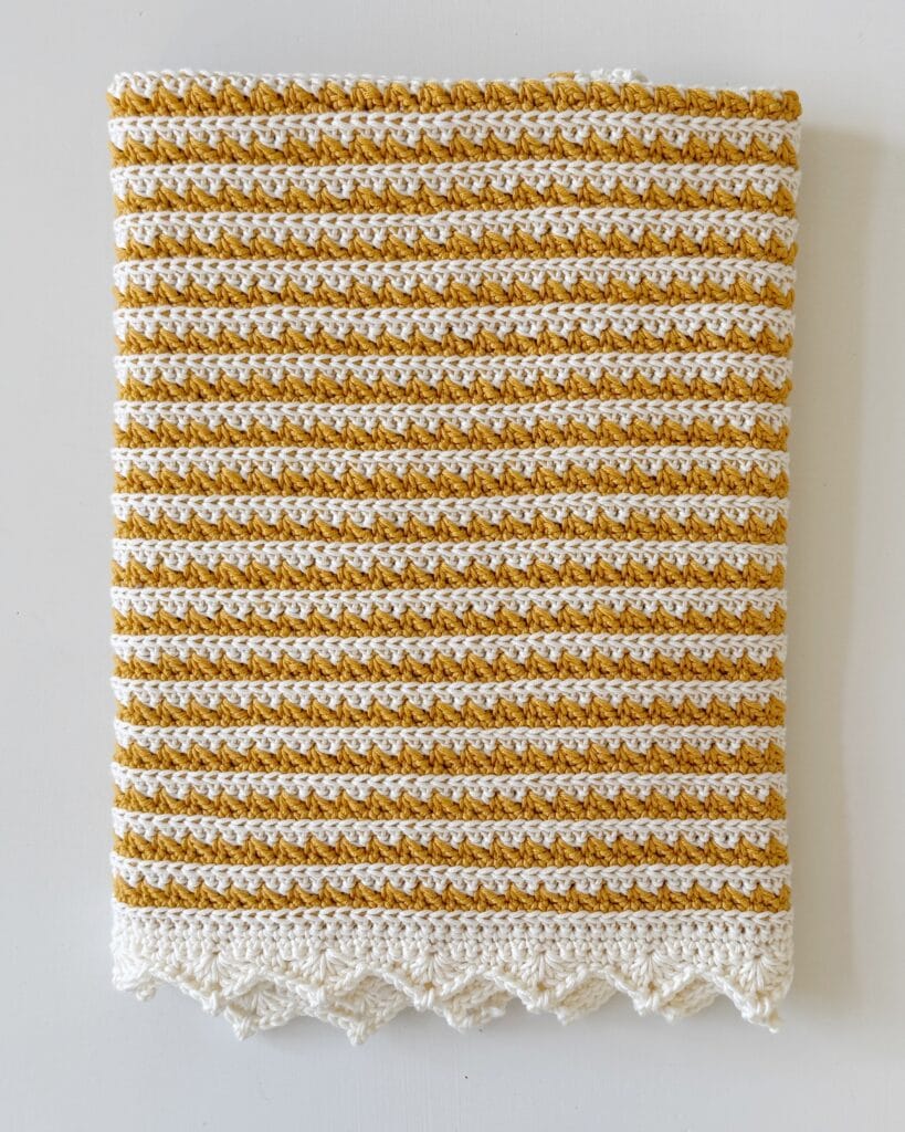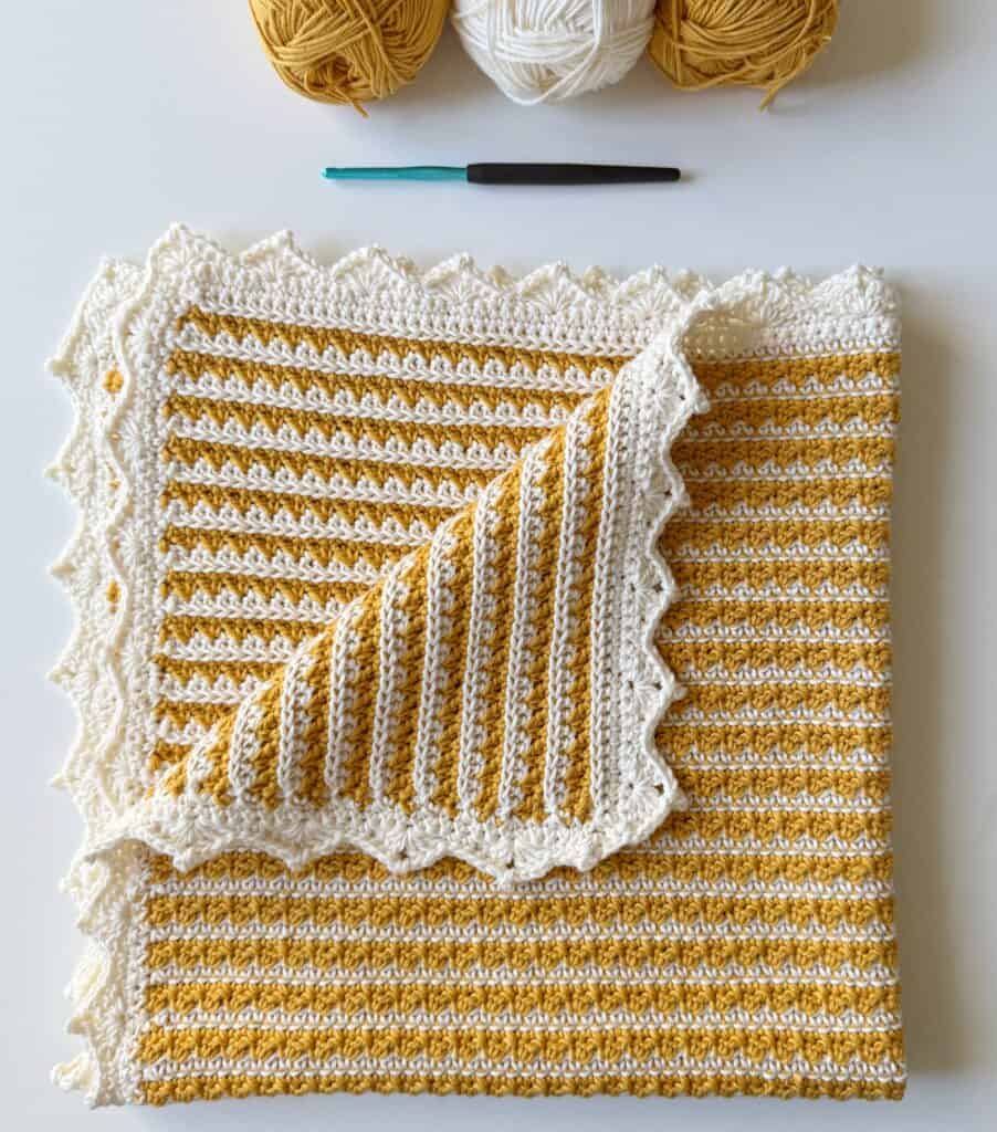 I hope that you enjoy this little project. It really is a beautiful blanket. I also think it can work with any weight of yarn. Or I think it would be beautiful if the contrasting color were a variegated yarn and there would be some naturally occurring color changes. Maybe something I would like to do in the future.