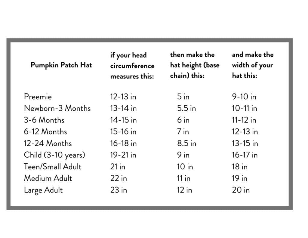 The pattern is for Child Size hat, you can adjust yourself with the size chart below: