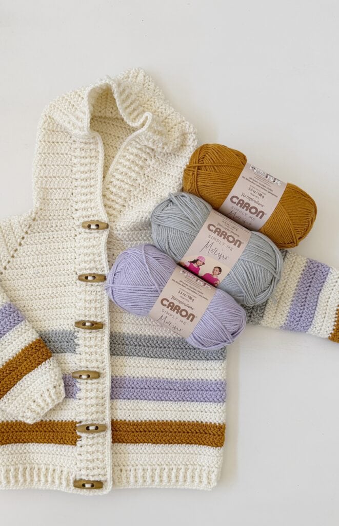 Hannah used all the colors in the yarn box collab to make a darling baby blanket! It’s bright and colorful and was great for summer. And we also have fallen in love with Caron All Day Cotton. It’s a nice alternative for hot pads and anything you need with 100% cotton.