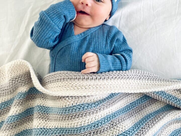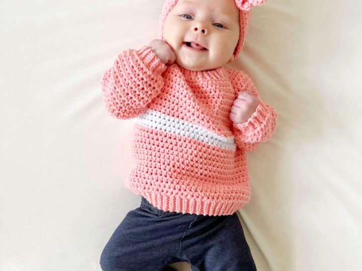 Need an idea of what to make? We are including in this post a list of all the projects we have made with Bernat Bundle Up. It is absolutely one of our favorite yarns for baby blankets, hats, sweaters, and anything that needs to be soft and cozy.